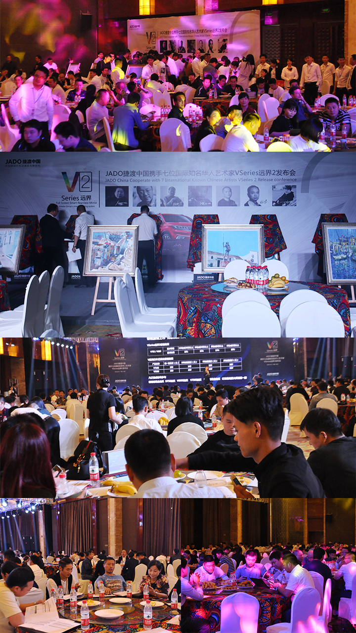 本次會議也是JADO捷渡中國互聯(lián)網(wǎng)+全屏智能后視鏡VSeries遠界2的首次亮相,專業(yè)研發(fā),匠心制造更加驗證了JADO捷渡對中國市場的堅定承諾。現(xiàn)場展示了JADO捷渡中國VSeries遠界2全球首批七位藝術(shù)家用戶為遠界2上市創(chuàng)作的油畫作品,JADO捷渡中國作為禮品贈予會議當天的合作伙伴們。