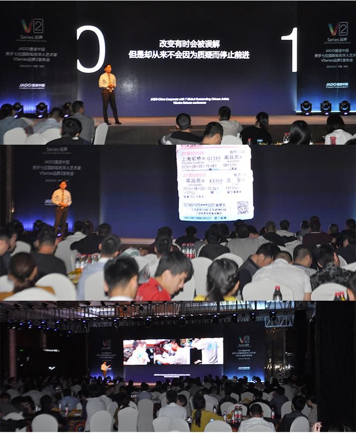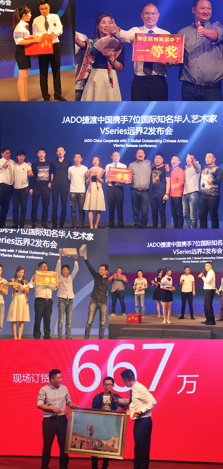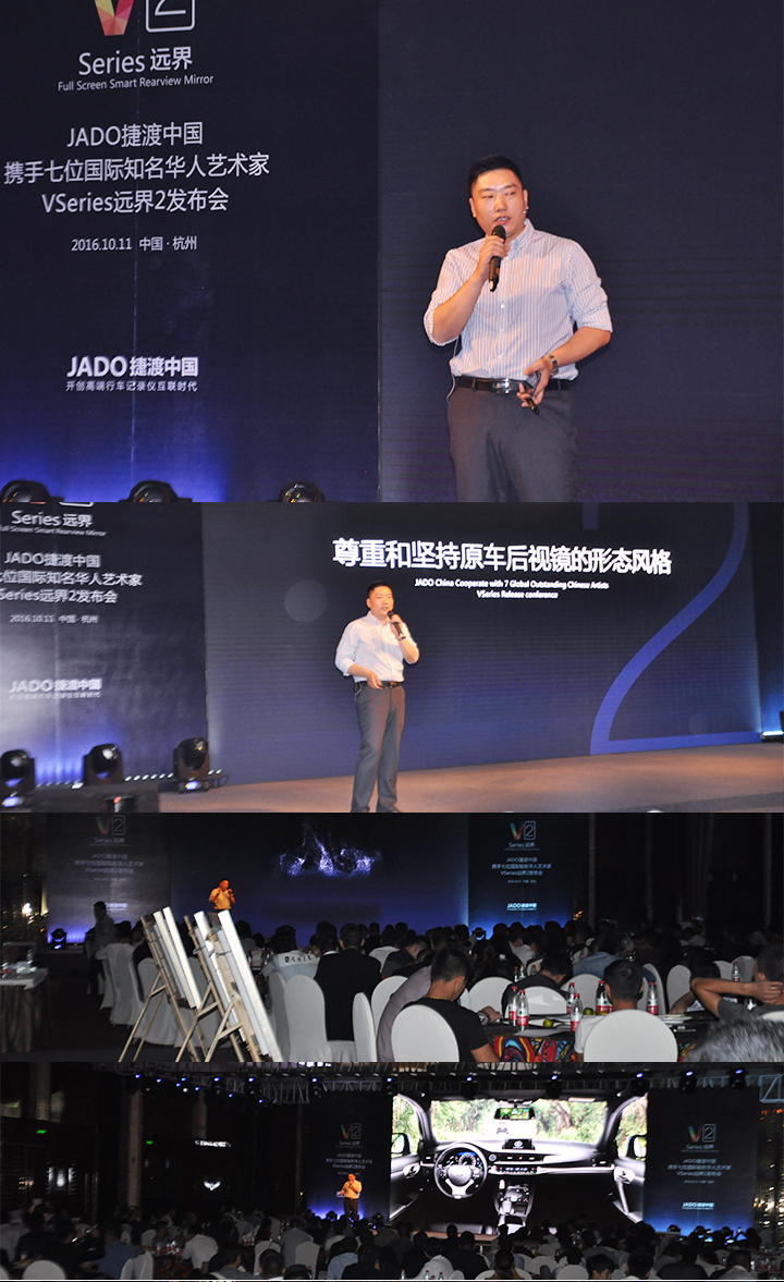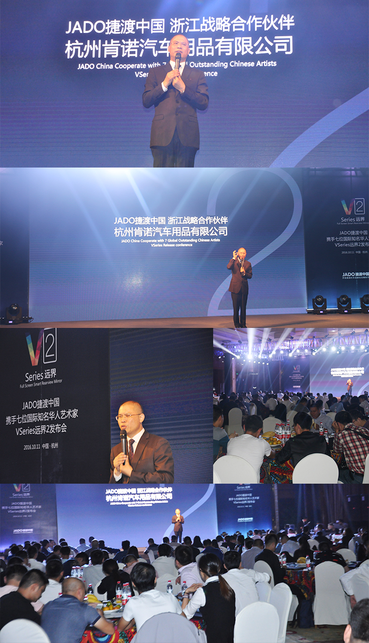2016年10月11日,以 “再見,過去;你好,遠界 Bye yesterday, Hello VSeries” 為主題的“JADO捷渡中國攜手七位國際知名華人藝術(shù)家VSeries遠界2(中國• 杭州)發(fā)布會”在杭州海外海國際酒店完美落幕。本次活動由JADO捷渡中國浙江省戰(zhàn)略伙伴杭州肯諾汽車用品有限公司主辦。