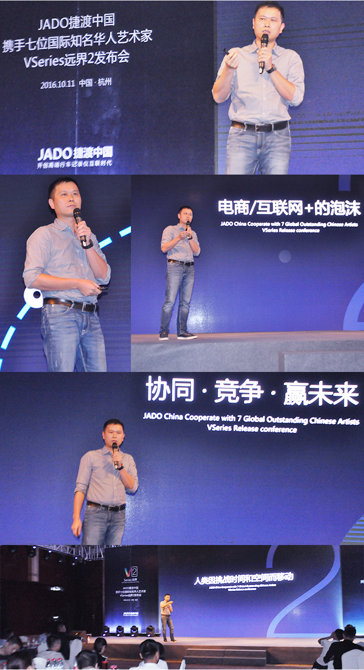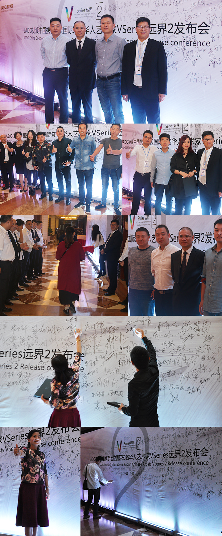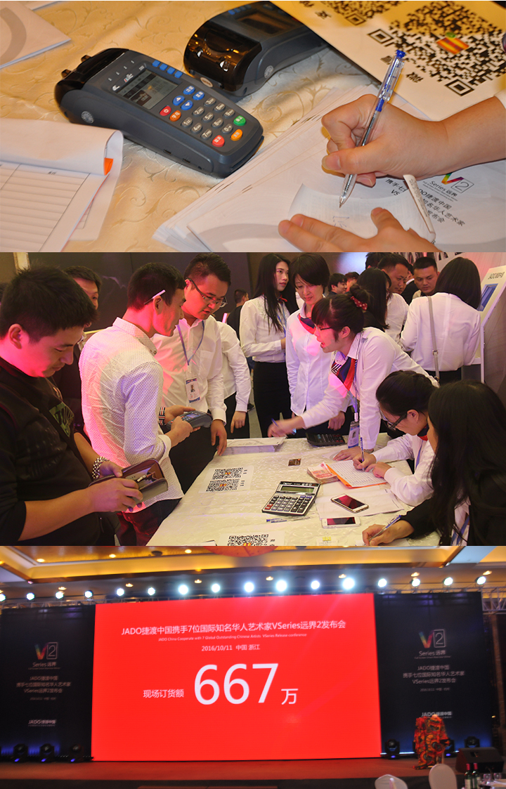 2016年10月11日,以 “再見,過去;你好,遠界 Bye yesterday, Hello VSeries” 為主題的“JADO捷渡中國攜手七位國際知名華人藝術(shù)家VSeries遠界2(中國• 杭州)發(fā)布會”在杭州海外海國際酒店完美落幕。本次活動由JADO捷渡中國浙江省戰(zhàn)略伙伴杭州肯諾汽車用品有限公司主辦。