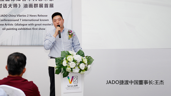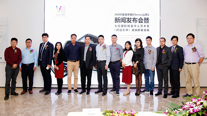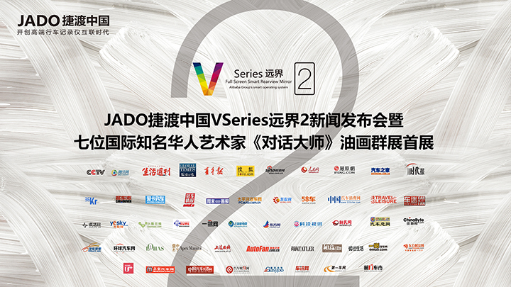 2016年10月14日下午,JADO捷渡中國攜手7位全球杰出華人藝術家在上海外灘半島美術館舉行“互聯(lián)網(wǎng)+全屏智能后視鏡‘VSeries遠界2’新聞發(fā)布會暨7位全球杰出華人藝術家《對話大師》油畫群展首展”。