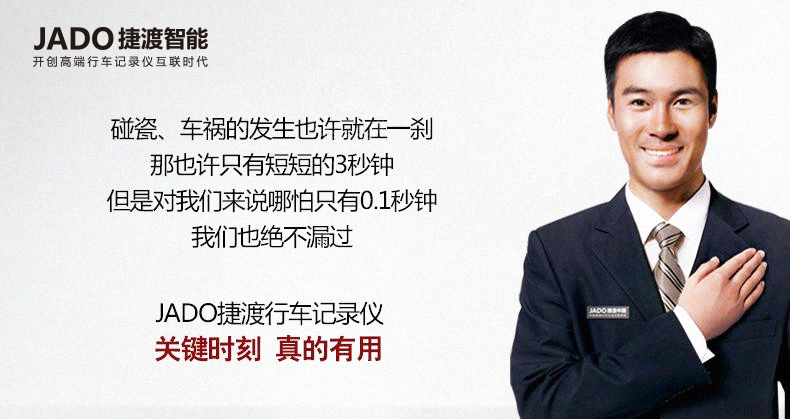 伴隨國內汽車保有量增加,各種交通事故的發生概率隨之攀升。現在很多車主越來越倚重行車記錄儀等工具,為在意外交通事故發生時能維護自身合法權益,以備不時之需。一般而言,交警通過車主視頻判定責任時,需要視頻清晰地拍下事故車輛車牌。作為一款智能行車記錄儀,JADO捷渡智能(中國)智能行車記錄儀配備了行業高端的主控芯片以及圖像傳感器,不論是白天還是夜間,都能清楚地記錄行車過程中的場景。