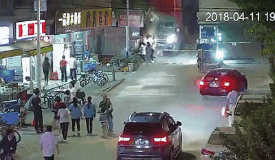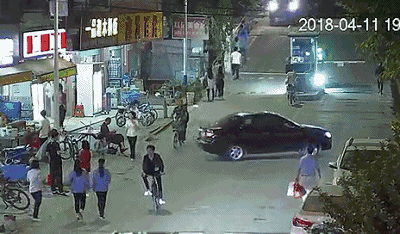 當時路邊還有三三兩兩的行人
