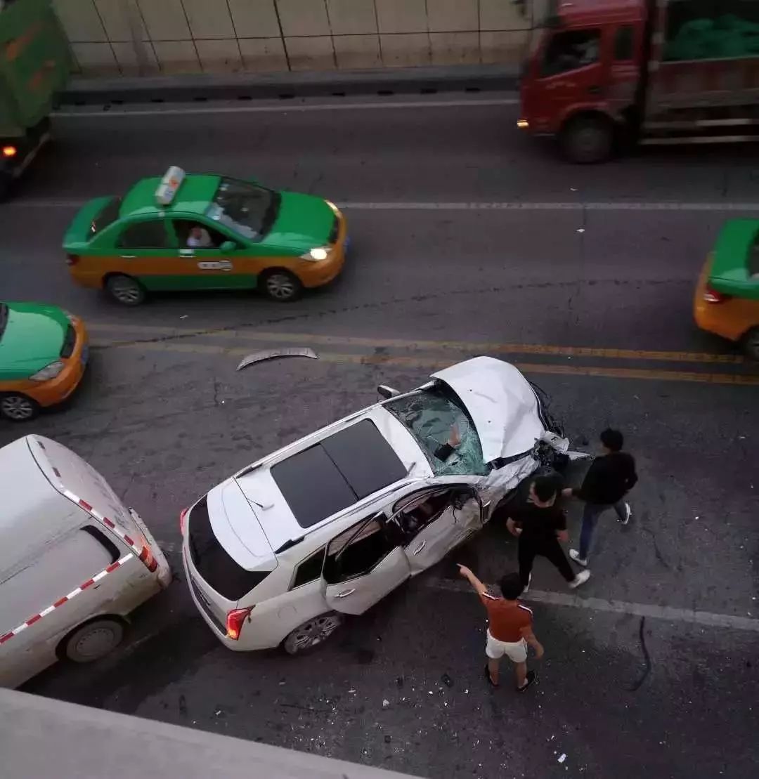 事故發(fā)生的地點(diǎn)在玉祥門(mén)盤(pán)道下穿隧道入口處,當(dāng)時(shí)是一輛白色凱迪拉克SUV轎車(chē)高速行駛與對(duì)向面包車(chē)發(fā)生碰撞。根據(jù)市民提供的行車(chē)記錄儀視頻顯示,凱迪拉克在從右側(cè)實(shí)線變道至左側(cè)超車(chē)時(shí),因高速行駛躲避路面障礙物不及,造成車(chē)輛方向失控,越過(guò)雙黃線撞向?qū)γ骜倎?lái)的一輛面包車(chē),整起事故發(fā)生過(guò)程前后只有5秒鐘。