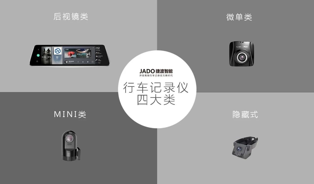目前市場上的行車記錄儀種類繁多,形態也各異,其中按照產品形態可以劃分為:后視鏡類、微單類、MINI類和隱藏式四種。