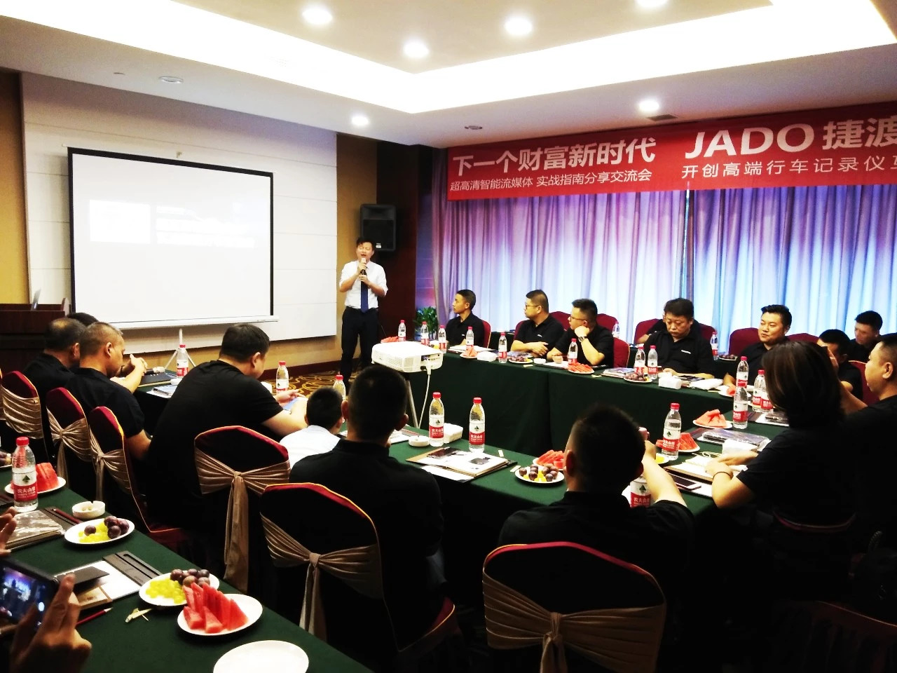 好產(chǎn)品自己會(huì)說話,JADO捷渡智能(中國(guó))正是憑借自身的產(chǎn)品實(shí)力贏得了車主的長(zhǎng)久信賴。本次交流培訓(xùn)會(huì)請(qǐng)來了JADO捷渡智能(中國(guó))戰(zhàn)區(qū)負(fù)責(zé)人杜新先生為大家分享VSeries遠(yuǎn)界3——超高清智能流媒體后視鏡產(chǎn)品的賣點(diǎn)和獨(dú)特優(yōu)勢(shì)。結(jié)合終端店面對(duì)的實(shí)際情況與問題,與大家一起探討了如何經(jīng)營(yíng)好終端店面,如何更好的做好品牌產(chǎn)品的前后期服務(wù)等。場(chǎng)下的終端店運(yùn)營(yíng)商在認(rèn)真聽講的同時(shí),也就產(chǎn)品技術(shù)知識(shí)與杜新先生進(jìn)行了深度交流,大家積極踴躍,提出了眾多寶貴經(jīng)驗(yàn)與建議。