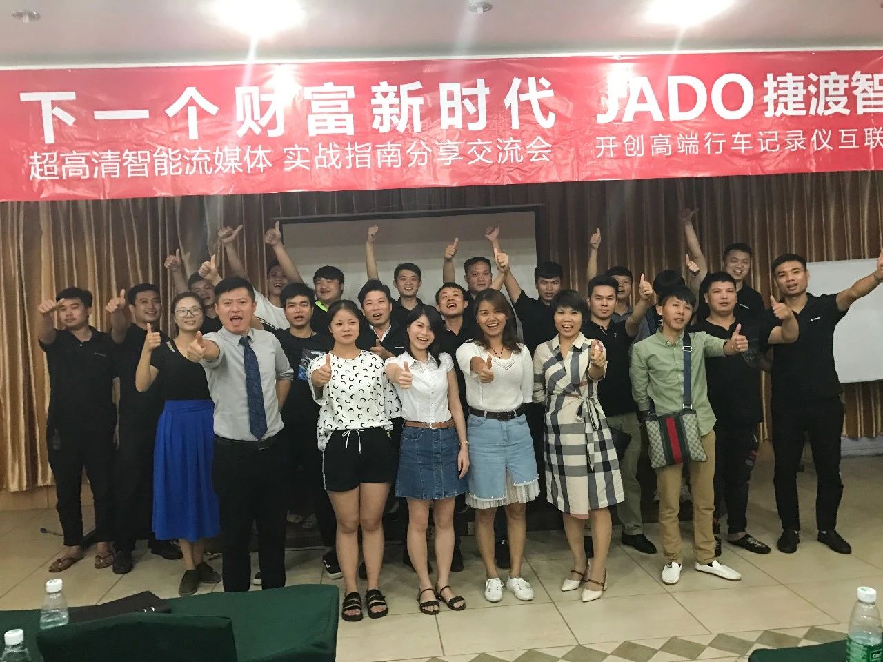 2018年9月27日,JADO捷渡智能(中國)攜手百凰商貿有限公司在廣西省舉行了“下一個財富新時代(廣西站)”交流分享會!來自廣西省柳州市的60余家JADO捷渡智能(中國)授權終端店參加了此次會議。