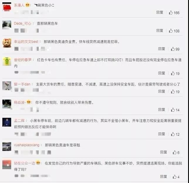 根據我國認定交通事故責任的“通用法則”——發生交通事故認定后車全部責任,但視頻顯示,奧迪車突然減速,致使最后方的大卡車剎車不及時導致連環車禍,該路段并非道口、隧道等特殊路段,奧迪車無故減速或停車,是極其危險的行為,理應在查清奧迪車行為是否屬于正常范疇后,對其進行相應的定責。