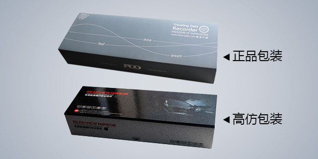 拿到產品后,首先從包裝上就可看出真假來,當然一般客戶肯定還是不清楚的:捷渡產品的包裝統一為捷渡灰,簡潔大氣,包裝上有公司品牌信息;高仿的包裝比較亮眼花哨,包裝上卻無任何廠家信息,這樣消費者就應該明白你買到的是不是假貨了吧。上圖直接看: