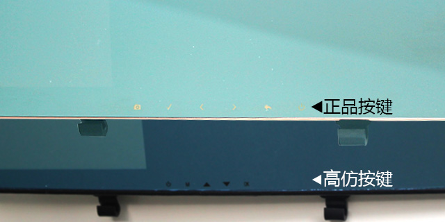 3、 正品捷渡 D610 中間下方功能按鍵為金色觸摸按鍵,而高仿為黑色,且觸摸不起作用,真正的按鍵隱藏在產品下方,操作十分不方便,屏幕上的按鍵只是一個假象。