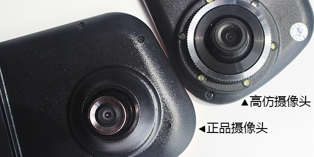 1、 看鏡頭:在背面,仔細查看會發現真假攝像頭部分有很大的差距。正品捷渡 D610 采用的是 360 度可旋轉的 6 玻鏡頭,且做工十分考究,高仿的卻是塑料鏡頭,鏡頭邊比較花哨還鑲嵌補光燈,貌似很高檔。