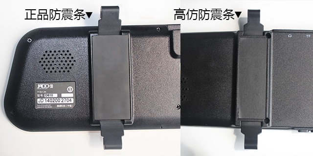 3、 看防震條:正品捷渡 D610 防震條寬而厚,且高出背殼平面 1MM 起到真正減震作用,而高仿 D610 防震條窄而薄,低于背殼平面,根本起不到任何減震作用。
