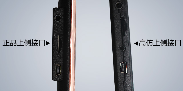 看產品側面,僅做工工藝就可以很明顯地看出正品捷渡 D610 與高仿的區別:
