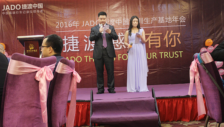 2016年1月17日JADO捷渡中國2015年度年會在福滿城大飯店隆重舉行。公司全體員工齊聚一堂,共饗盛典。本年度年會主題為“捷渡,感恩有你”,為感謝公司員工一年的辛勤工作,同時增進公司員工與領導之間的互動交流,本次年會還包含節目表演、游戲、評獎、抽獎等環節,流程豐富、精彩紛呈。