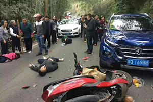 - 2018-04-17 【時事說法】小轎車彎道超車,撞飛一輛摩的,造成2死1傷